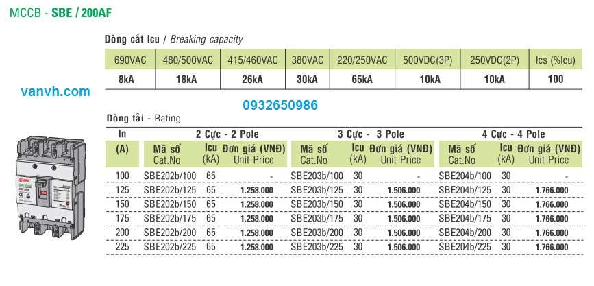 Mã SP: SBE202b 225A 65kA Sino